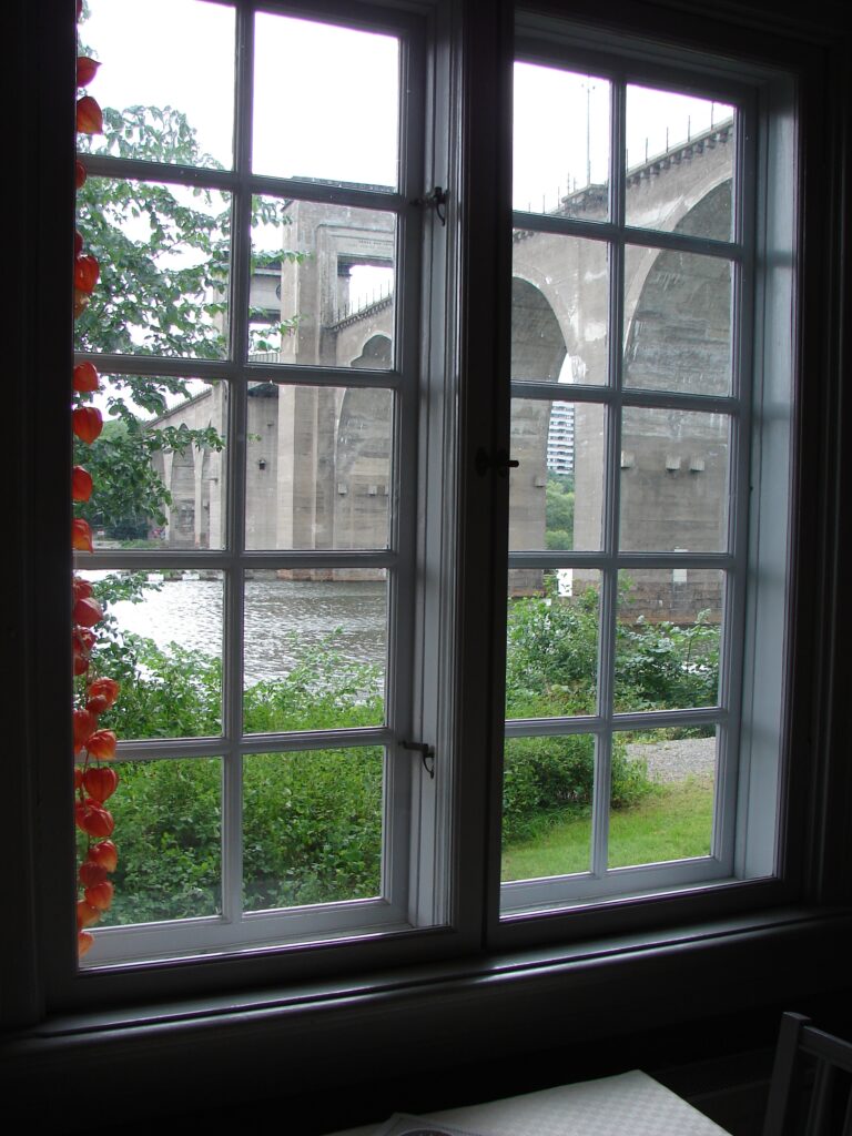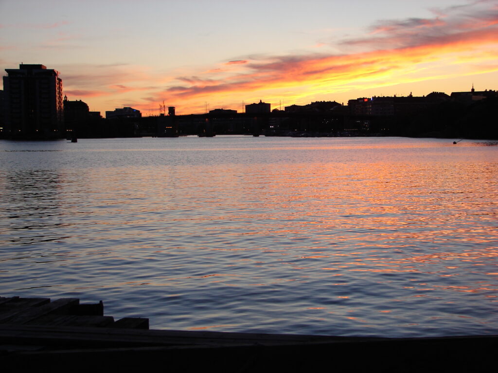 Vår egen lilla färja ”Årstafrun” går från bryggan under järnvägsbroarna.
